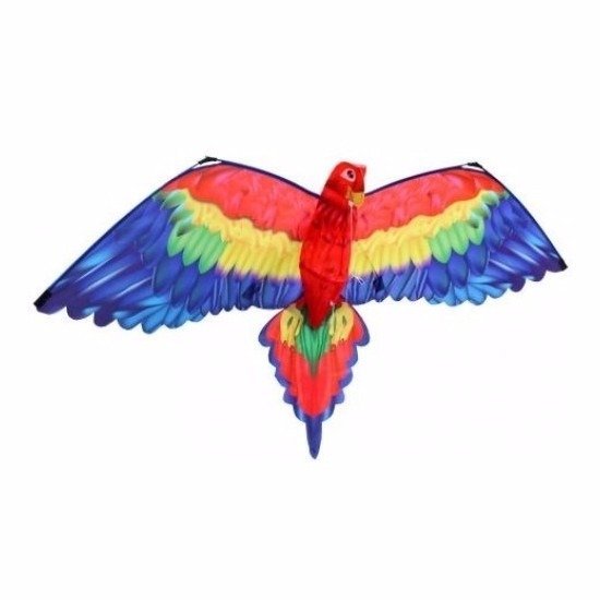 3D vlieger papegaai 144 cm. Vrolijk gekleurde vlieger in de vorm van een prachtige papegaai. De vlieger is gemaakt van scheurvast ripstop polyester en wordt geleverd inclusief vliegerlijn op een winder. De vlieger vliegt heel gemakkelijk en heeft maar weinig wind nodig. Windrange: 20-40 km/u. Formaat: 144 x 80 cm. Spanwijdte: 144 cm. Geschikt voor kinderen vanaf 6 jaar.