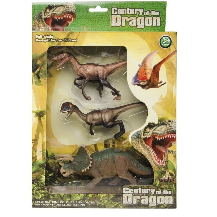 3x Plastic dinosaurussen speelgoed figuren voor kinderen. Bevat 3 verschillende plastic dinosaurussen: een deinonychus, een dilophosaurus en een triceratops. Afmeting verpakking: 28 x 23 x 6 cm. Hoogte dinosaurus: ca. 4,5 cm. Materiaal: plastic/kunststof.