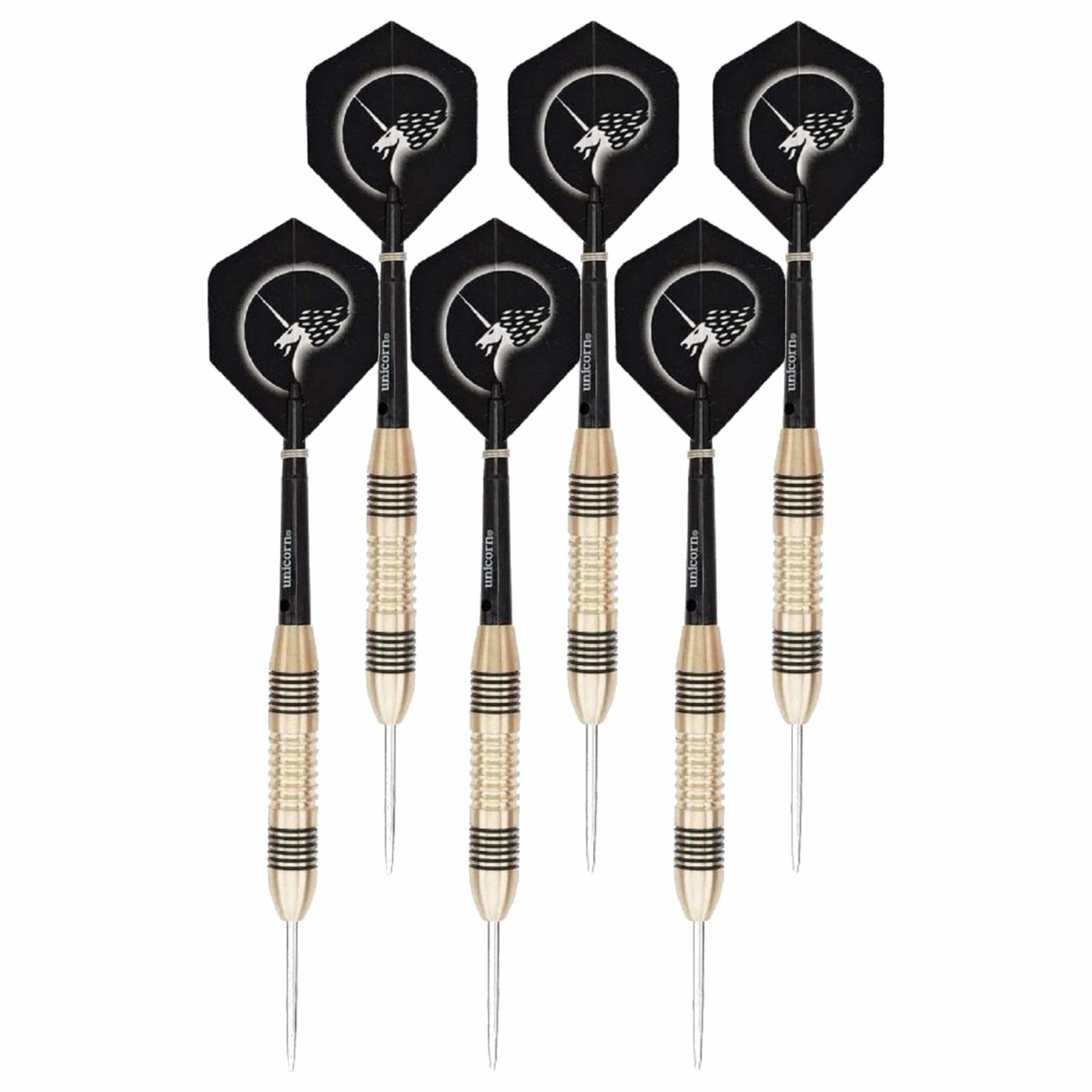 3x Set van 3 dartpijlen Core Brass 25 grams. 3x set van 3 dartpijlen met een messing (Brass) barrel, een PVC shaft, stalen punt en wordt standaard geleverd met Unicorn flights. Een set bevat 3 complete darts. U ontvangt 3x sets.