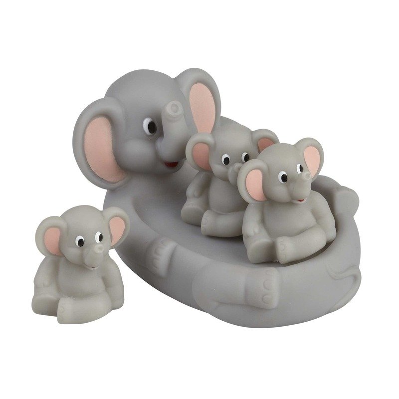 4 delige badspeeltjes set olifant. Grijze drijvende olifant voor in bad, met drie kleine olifantjes. Maak van elk badmoment een feestje met deze vrolijke olifanten-badspeelset! Deze set bestaat uit vier schattige olifanten die drijven op het water en klaar zijn voor eindeloos spetterplezier. Of je ze nu laat dobberen, laten ronddansen in het sop of er een grappig waterspel mee speelt, deze badvriendjes maken van badderen een echt avontuur. Perfect voor kleine waterratjes die dol zijn op dieren en spelen in het water! De grote olifant heeft een lengte van ca 16 cm. Badspeelgoed voor kinderen en baby’s.