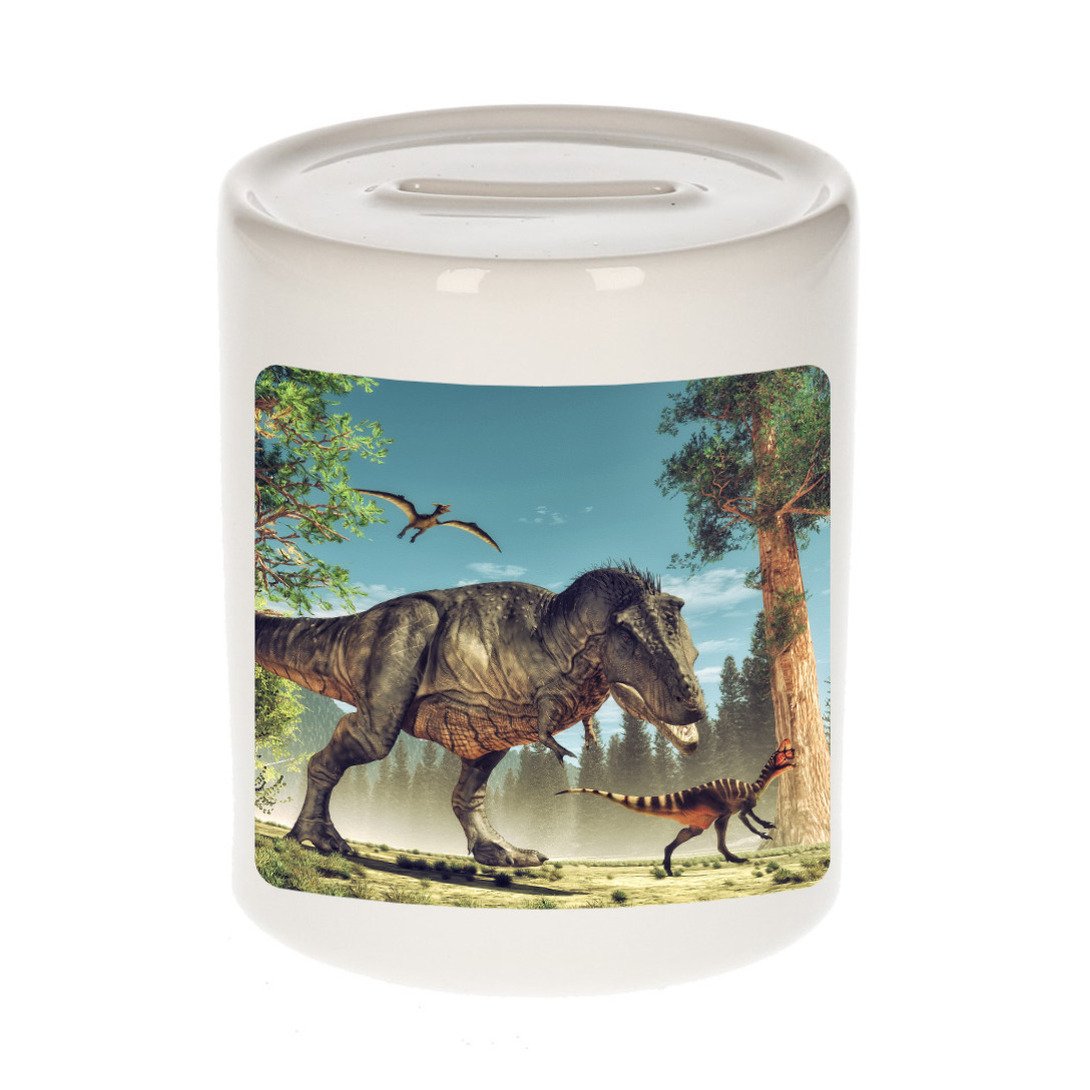 Dieren foto spaarpot dinosaurus t-rex 9 cm – dinosaurussen spaarpotten jongens en meisjes