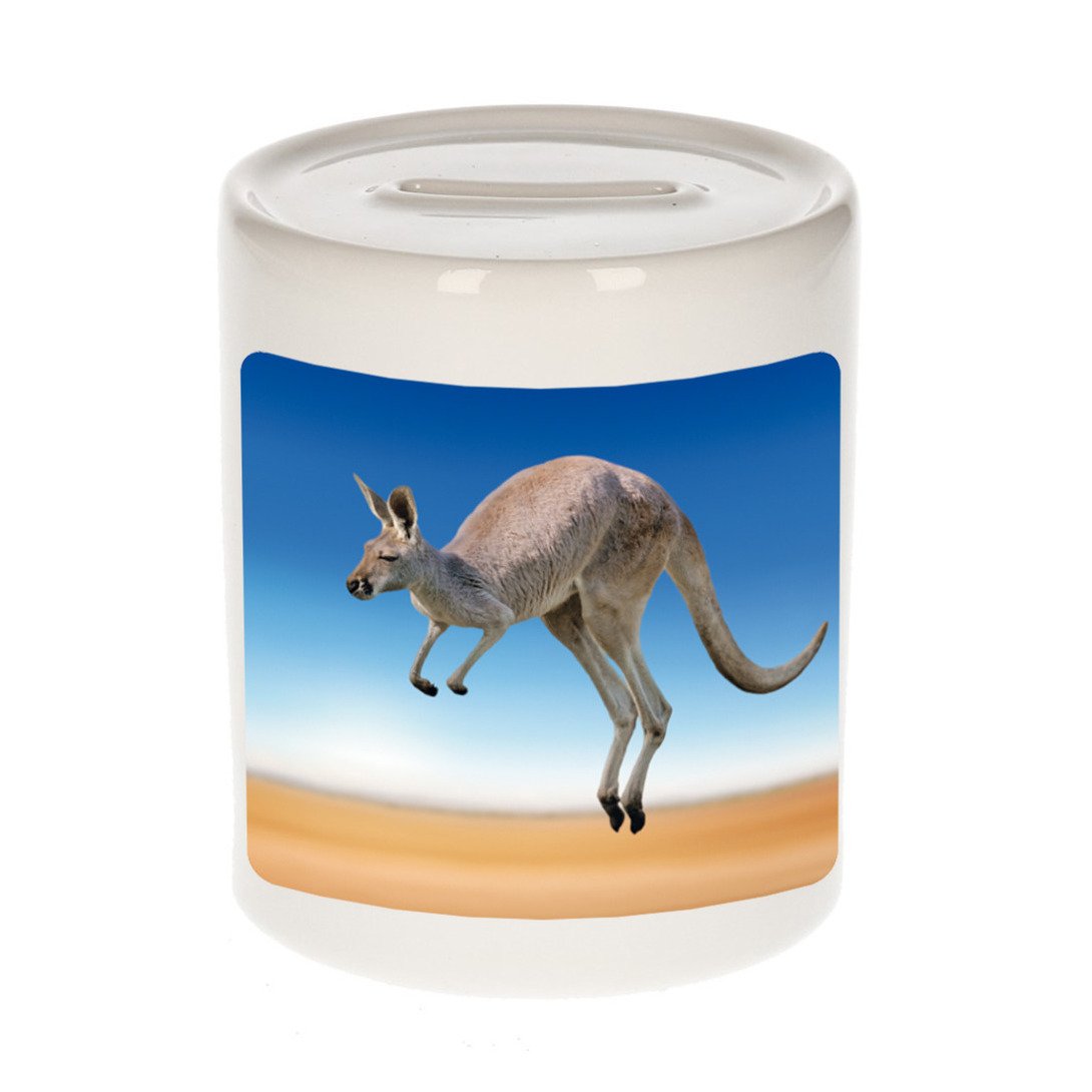 Dieren foto spaarpot kangoeroe 9 cm – kangoeroes spaarpotten jongens en meisjes