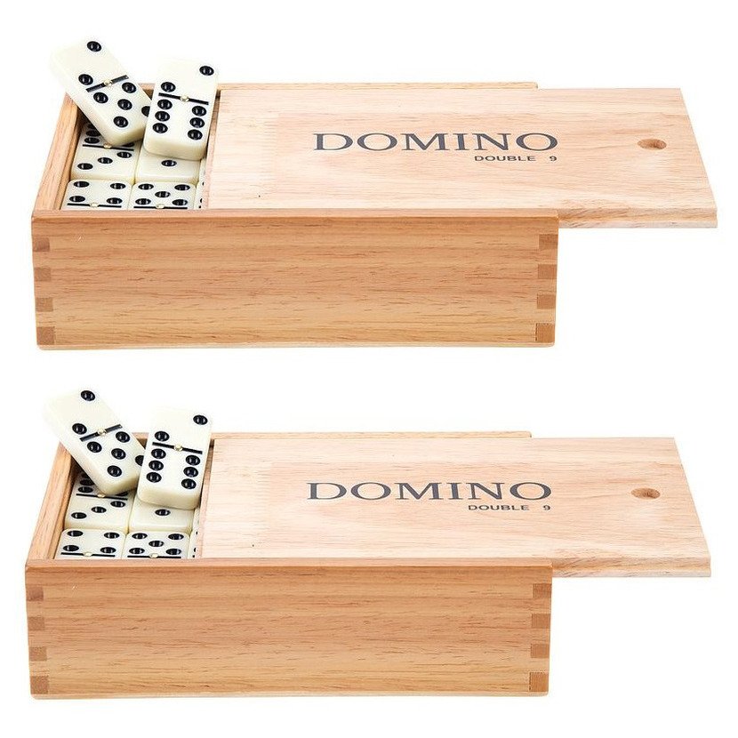 Domino spel dubbel/double 9 in houten doos 110x stenen