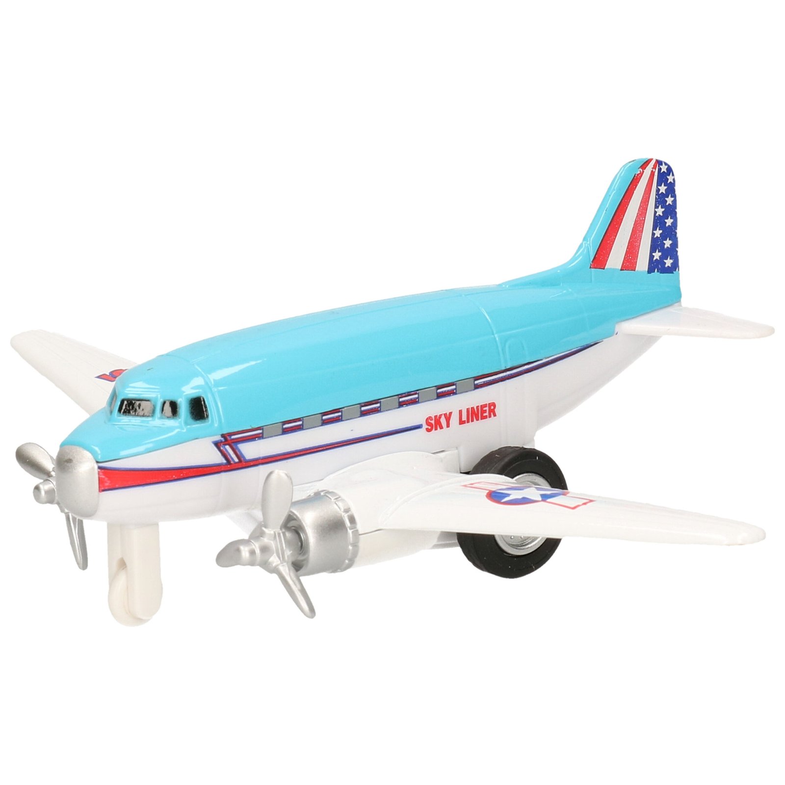 Goki Speelgoed Vliegtuig – 12 cm – turquoise – dubbele propeller – pull back motor