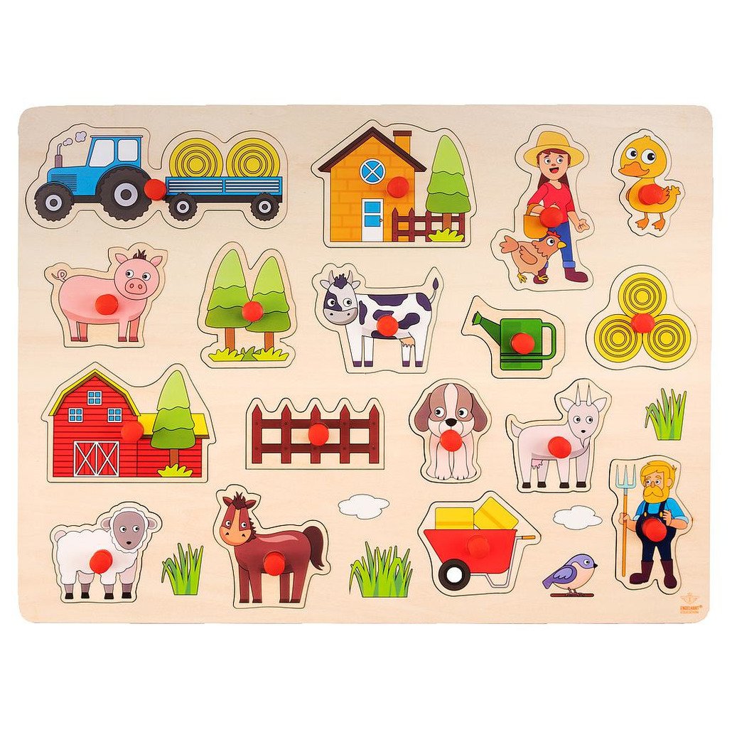 Houten knopjes/noppen puzzel – boerderij thema – 40 x 30 cm – puzzelen – speelgoed
