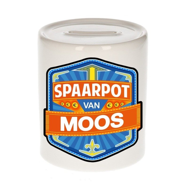 Kinder spaarpot met naam – Moos – keramiek – met dop – wit – Sparen – Spaargeld van Moos