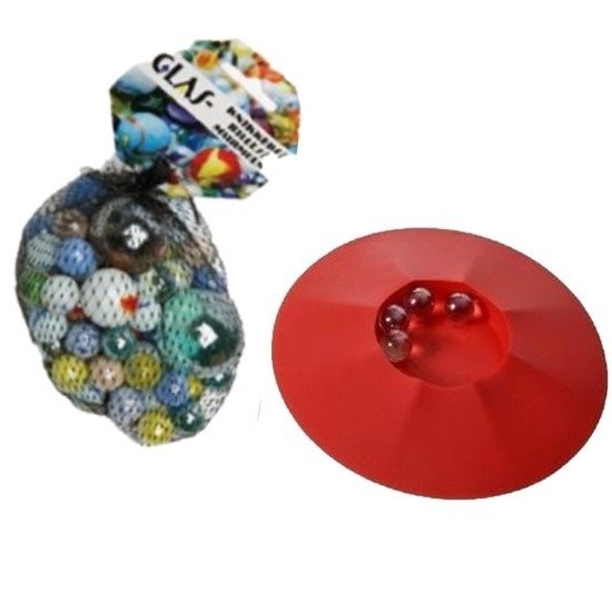 Knikkerpot met 170 knikkers speelgoed set. Complete knikkerset, bestaande uit: Don Juan knikkers, 170 stuks en een rode knikkerpot. U ontvangt 2 losse zakjes knikkers met een inhoud van 170 stuks. Per netje zijn er 80 met een formaat van 1,6 cm en 5 grotere. Materiaal knikkerpot: kunststof, formaat: 17 cm. Zo heb je een ruime keuze uit knikkers om een potje knikkeren mee te winnen! Glazen speelgoed knikkers voor jongens/meisjes/kinderen. , Dit artikel bestaat uit:, 1x Knikkerpot van kunststof – 17 cm – rood – met knikkers – voor binnen en buiten, 2x Don Juan Knikkers – 79x stuks – gekleurd – in een netje