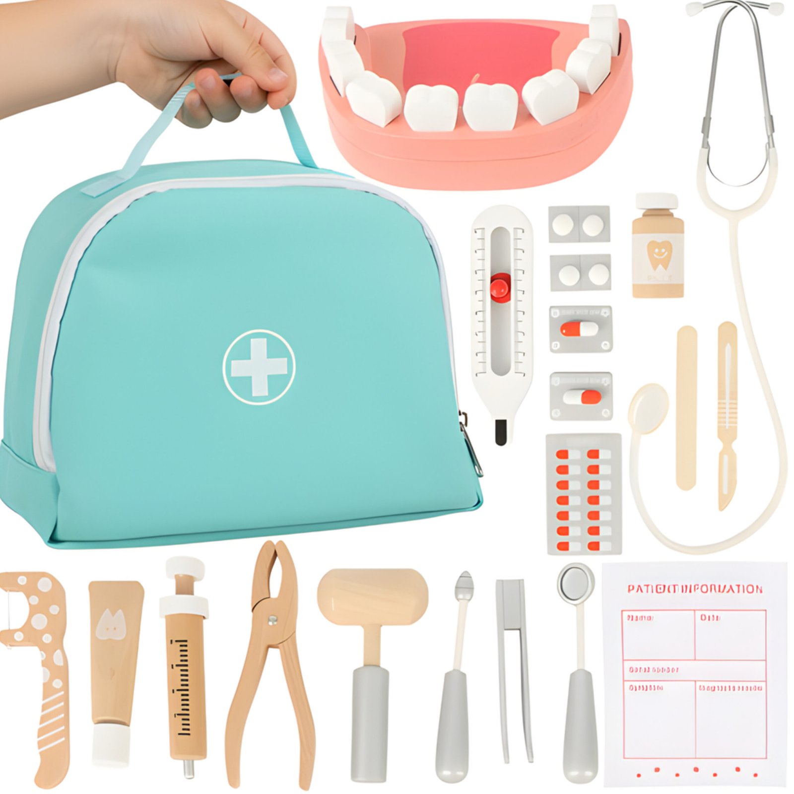 Kruzzel tandarts speelgoed – 24 delig – hout – dokterskoffer – voor kinderen
