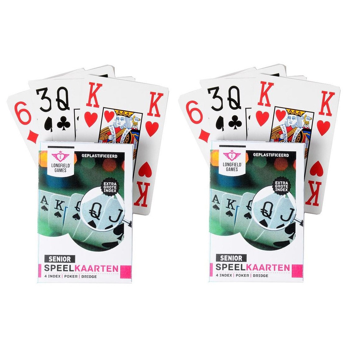 Longfield games Speelkaarten – 4x – kunststof – senior – klassiek