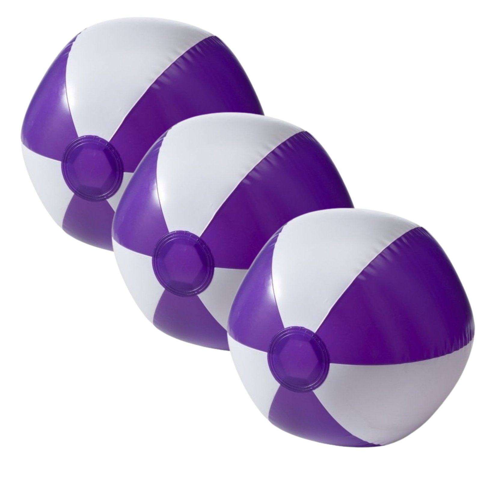 3x opblaasbare speelgoed zwembad of party strandbal in de kleuren paars/wit. De opblaasbare strandbal heeft een doorsnede van ongeveer 26 cm. Materiaal: pvc. Strandballen buiten speelgoed/strand speelgoed.