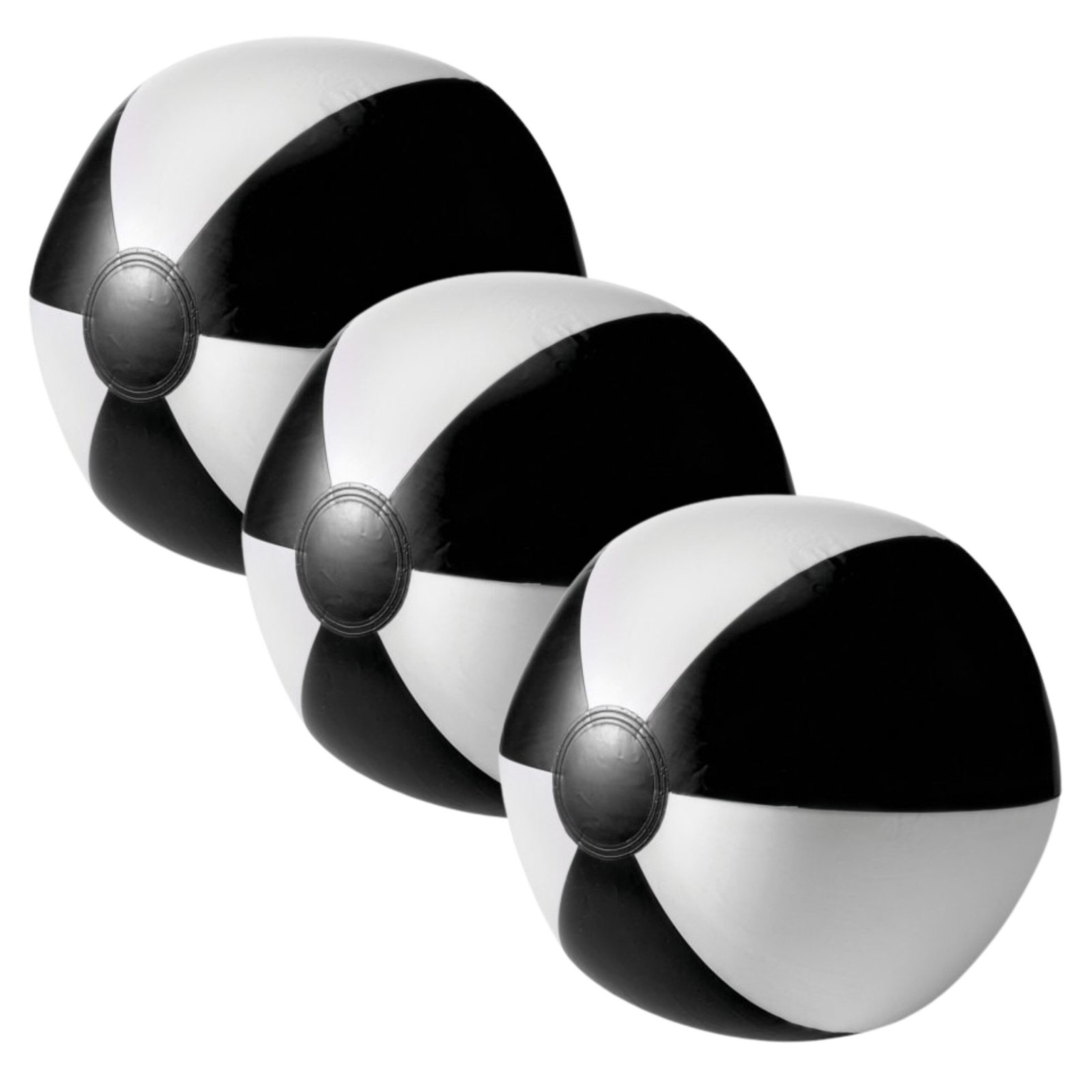 3x opblaasbare speelgoed zwembad of party strandbal in de kleuren zwart/wit. De opblaasbare strandbal heeft een doorsnede van ongeveer 26 cm. Materiaal: pvc. Strandballen buiten speelgoed/strand speelgoed.