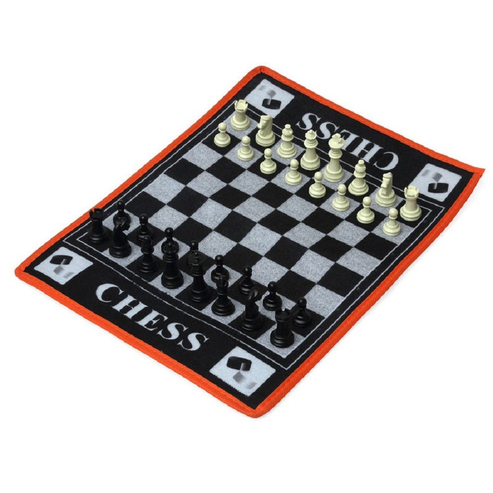 Reisspellen/bordspellen schaken/schaakspel set. Bord is van stof.