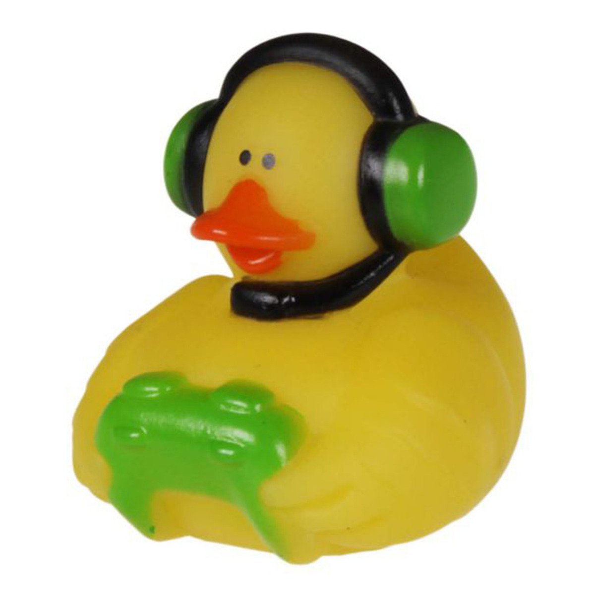 Rubber badeendje gamer in de kleur groen. Leuke badkamer fun speelgoed artikelen voor kinderen en volwassenen. Afmeting: size 5 cm. Materiaal: rubber/kunststof. Voorzie je hele bad met rubber beestjes voor ultimate fun.