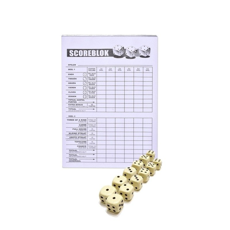 Scoreblok Yahtzee inclusief 12 dobbelstenen