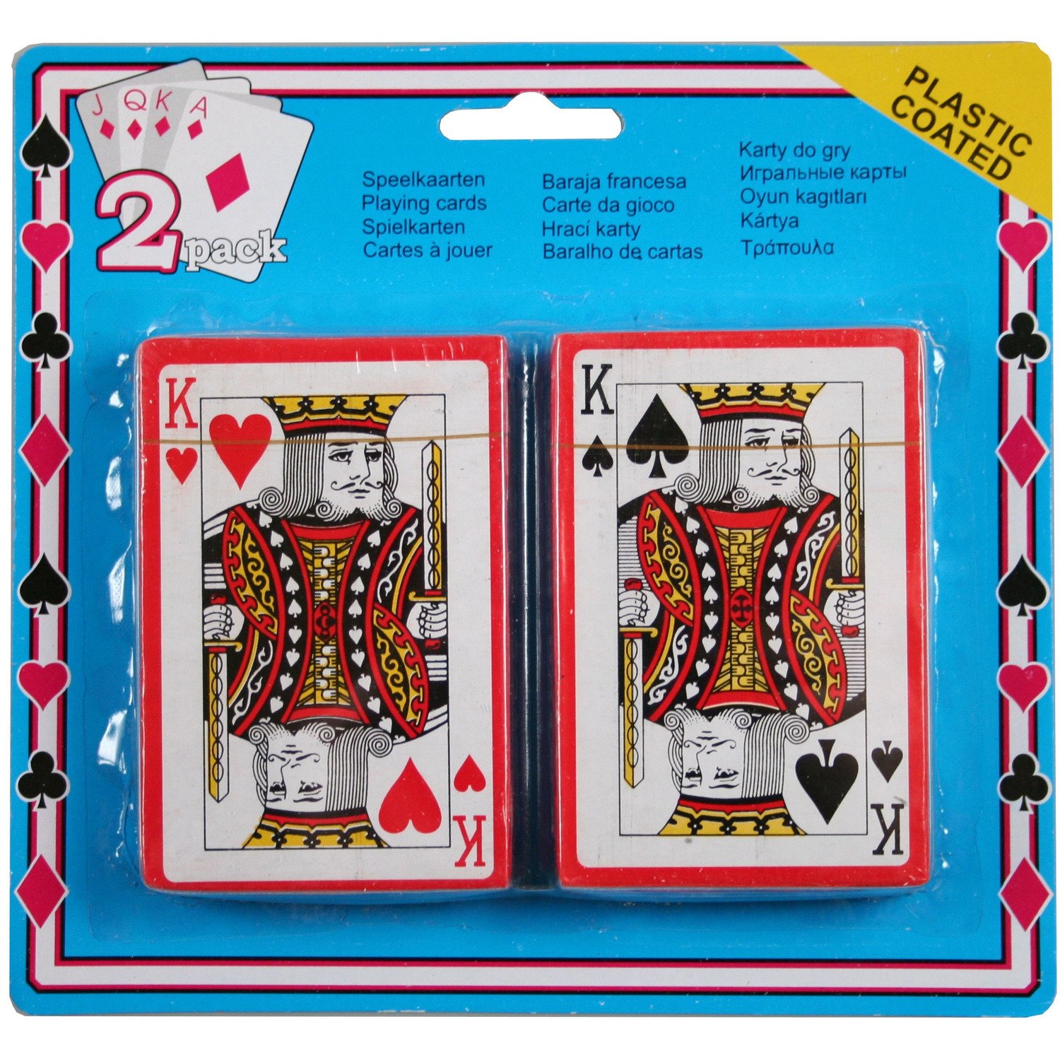 Sets van speelkaarten, met een klassieke bedrukking. De kaarten zijn Engelstalig (K, Q, J). Omdat de kaarten geplastificeerd zijn blijven ze beter beschermd tegen vuil en vocht. Inhoud: 54 kaarten per pakje. Materiaal: geplastificeerd papier. Afmeting kaart: ca. 9,5 x 6 cm.