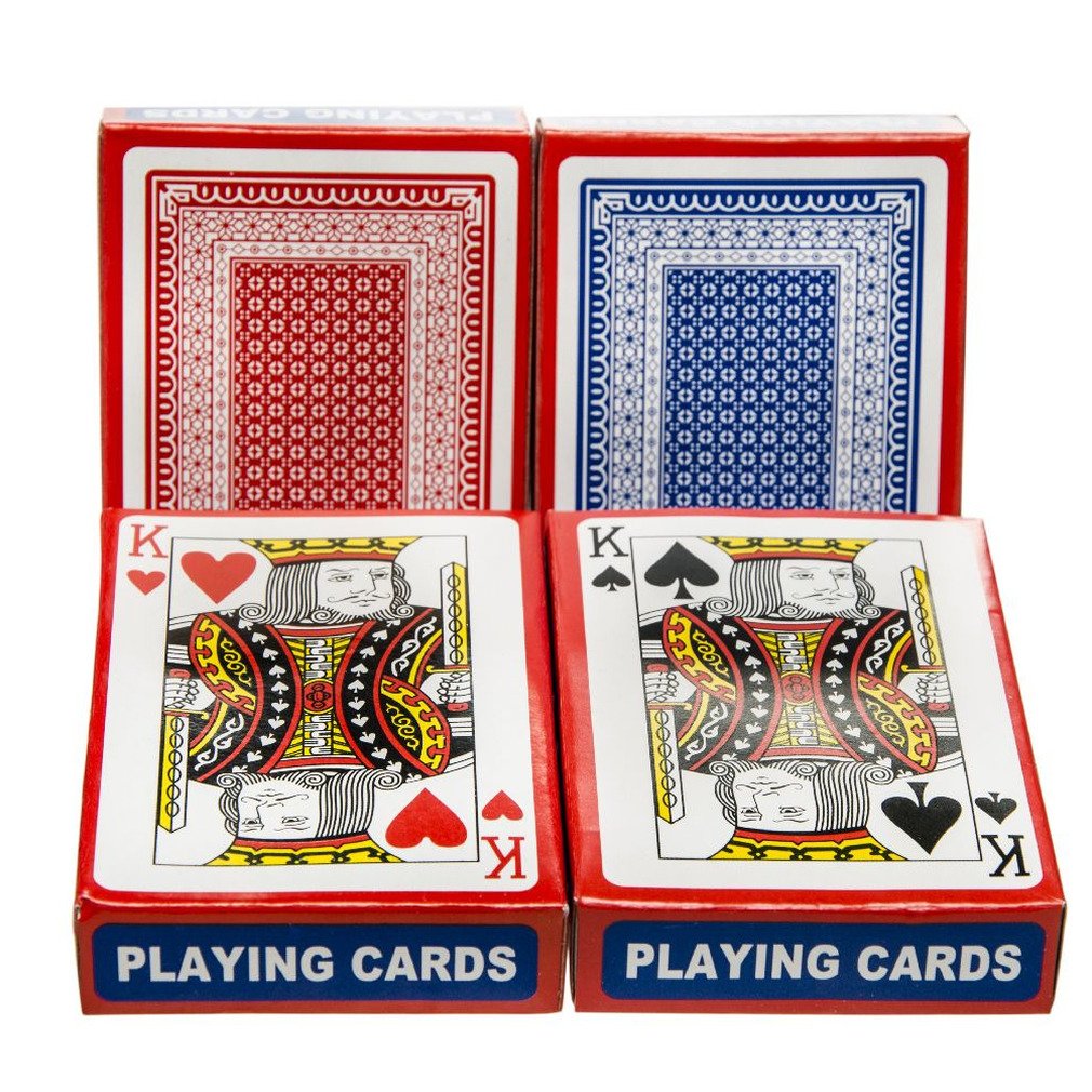Sets van speelkaarten, met een klassieke bedrukking. De kaarten zijn Engelstalig (K, Q, J). Omdat de kaarten geplastificeerd zijn blijven ze beter beschermd tegen vuil en vocht. Inhoud: 54 kaarten per pakje. Materiaal: geplastificeerd papier. Afmeting kaart: ca. 9,5 x 6 cm. Afmeting verpakking: 5.75 x 8.75 x 1.5 cm.