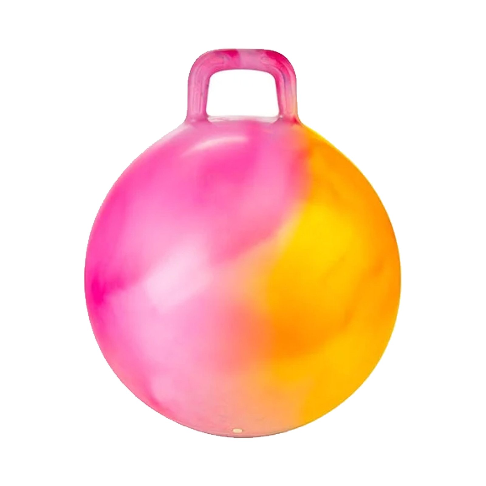 Skippybal in de kleur oranje/roze met marble effect. Geschikt voor (kleine) kinderen. De skippybal heeft een handvat met textuur om hem beter vast te kunnen houden en heeft een diameter van circa 45 cm wanneer deze opgeblazen is. Gemakkelijk op te blazen met een ballenpomp. Buitenspeelgoed skippyballen/springballen voor jongens en meisjes. Materiaal: rubber. Formaat: D45 cm.