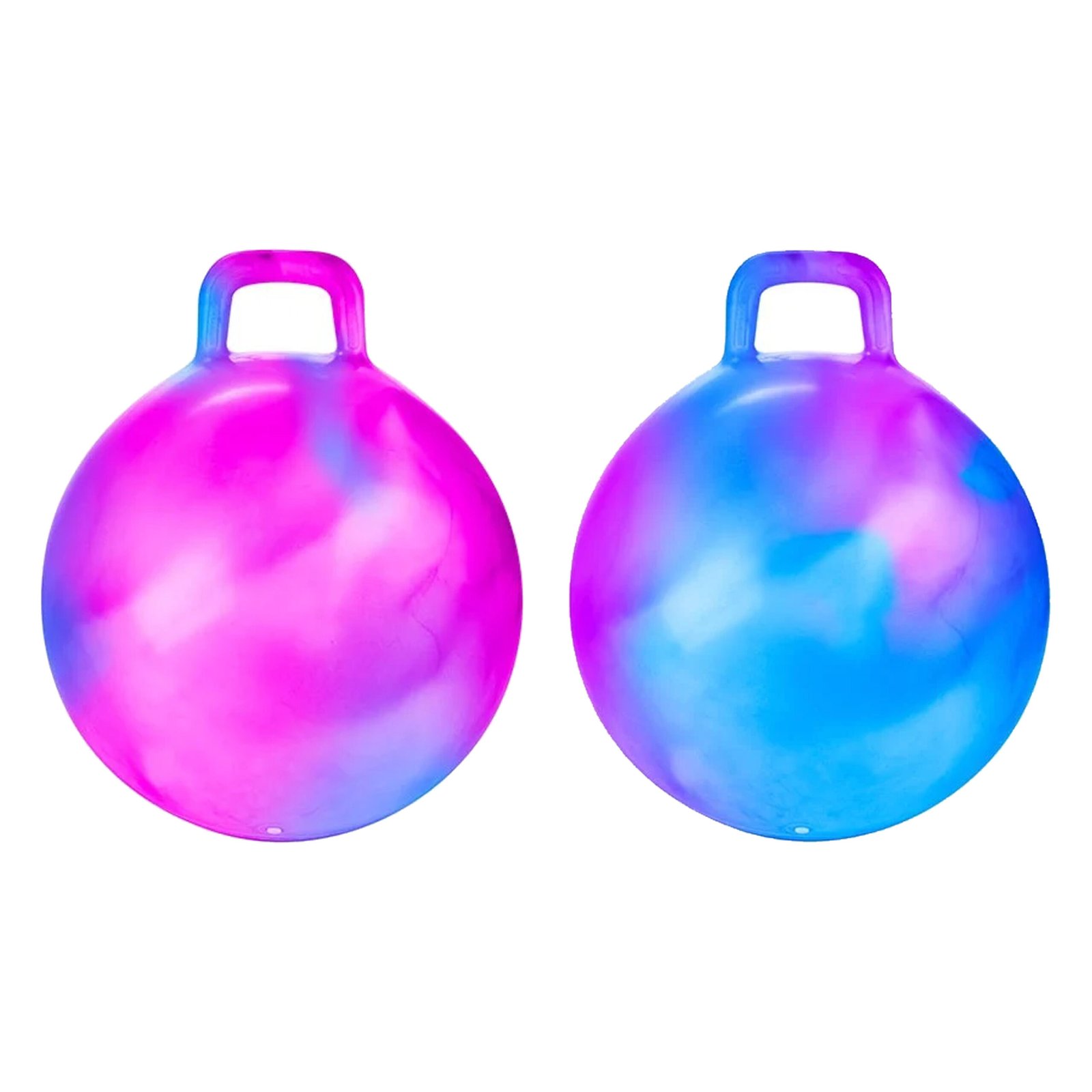 Skippyballen in de kleur roze/blauw en blauw/paars met marble effect. Geschikt voor (kleine) kinderen. De skippybal heeft een handvat met textuur om hem beter vast te kunnen houden en heeft een diameter van circa 45 cm wanneer deze opgeblazen is. Gemakkelijk op te blazen met een ballenpomp. Buitenspeelgoed skippyballen/springballen voor jongens en meisjes. Materiaal: rubber. Formaat: D45 cm. , Dit artikel bestaat uit:, 1x Skippybal marble – roze/blauw – D45 cm – buitenspeelgoed voor kinderen, 1x Skippybal marble – blauw/paars – D45 cm – buitenspeelgoed voor kinderen