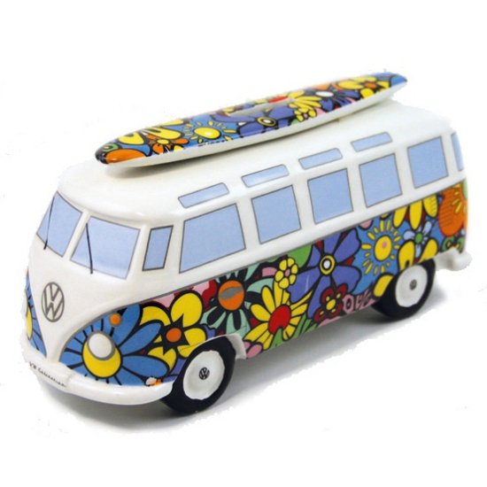 Spaarpot hippie flower power VW T1 busje – porselein – 21 x 9 cm – Cadeau