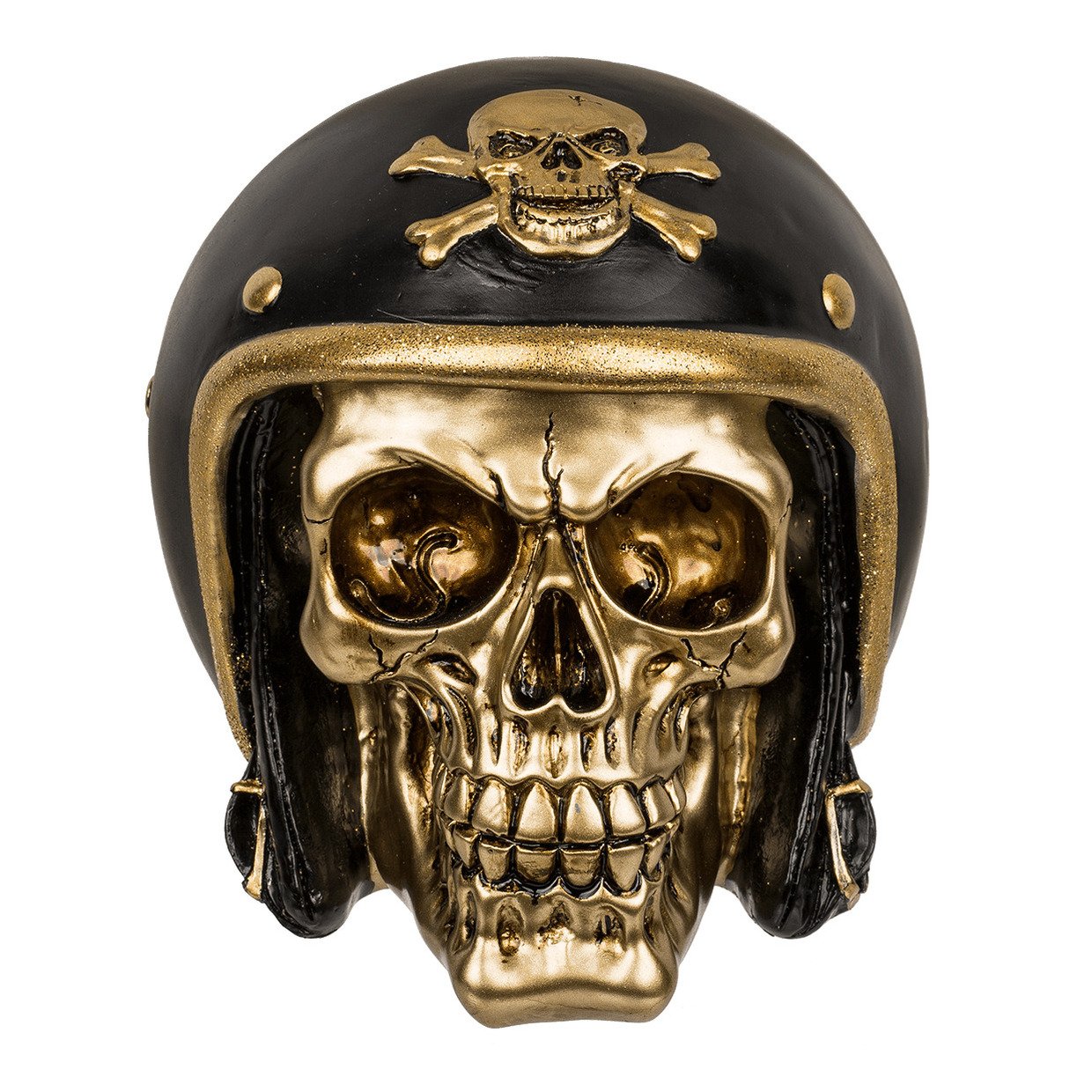 Spaarpot van Biker doodshoofd – polyresin – 15 x 13 cm – Zwart/goud – Volwassenen