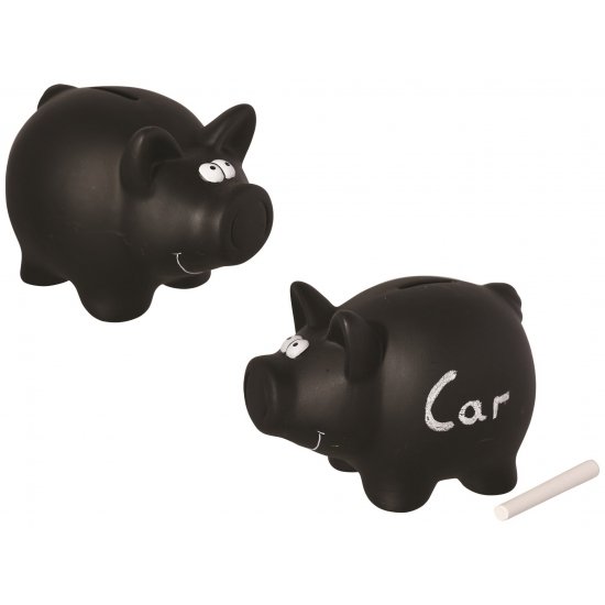 Spaarvarken of spaarpot met krijtje – 16 x 12 cm – kinderen – zwart – beschrijfbaar met naam/thema