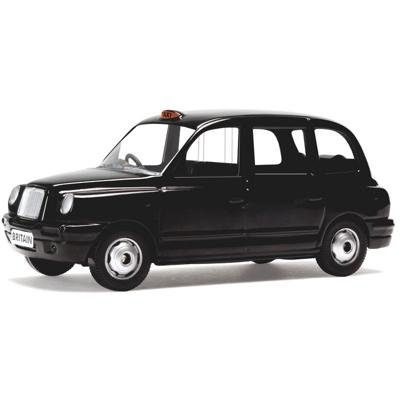 Zwarte modelauto van de beroemde Londense taxi/cab, de TX4 van de London Taxi Company. Merk: Corgi. Schaal 1:36. Lengte: ongeveer 12,5 cm. Materiaal: metaal. Speelgoed auto schaalmodel in de kleur zwart. + De beste replica schaalmodellen voertuigen van metaal. Als decoratie of voor uren speelplezier.