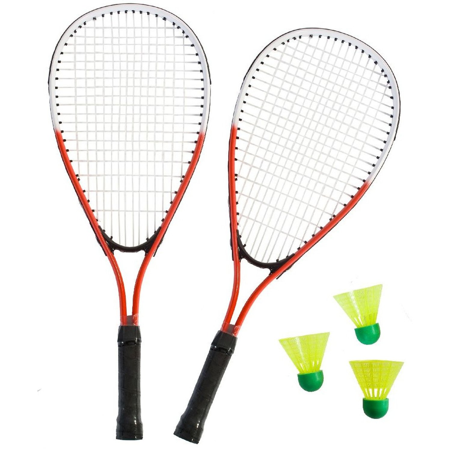 Speelgoedpostorder.nlBadminton set blauw 6-delig. Deze voordelige badminton set van Donnay wordt geleverd met 2 rackets, 3 shuttles en een opbergtas (niet afgebeeld). Formaat racket: ongeveer 67 x 25 cm. Badminton rackets en shuttles set voor op reis/camping/vakantie.