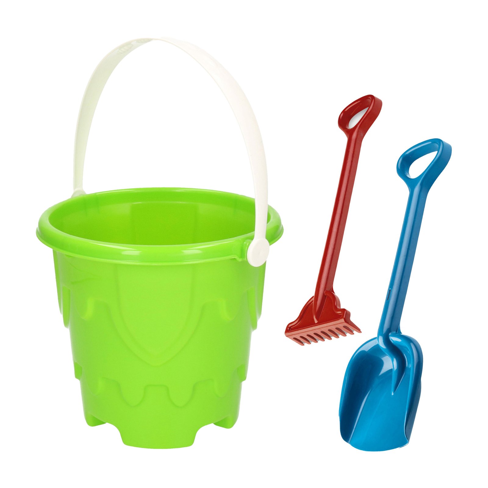 Strand/zandbak set – 3-delig – zandkasteel emmer/schep/hark