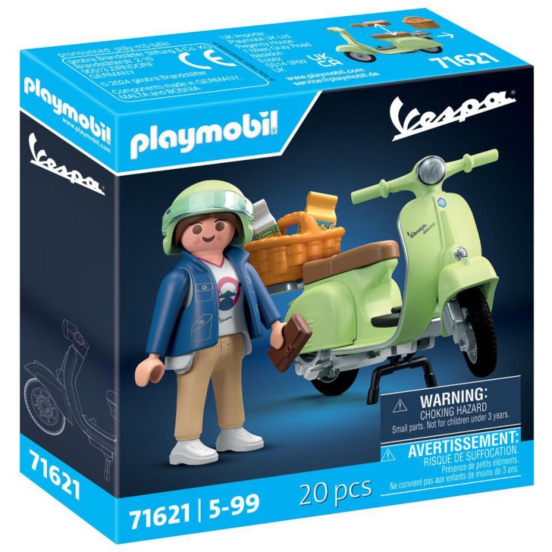 Spring op de Vespa 150 Sprint Veloce uit 1969 in lichtgroen van PLAYMOBIL! Geïnspireerd door het Piaggio scootermodel Vespa 150 Sprint Veloce, combineert deze authentieke PLAYMOBIL Vespa charme met tijdloze elegantie. De liefdevol vormgegeven Vespa wordt gecompleteerd door een PLAYMOBIL figuur en verschillende accessoires. Boodschappen en portemonnee kunnen worden opgeborgen in de mand achter het zadel. Met de verschillende zadelvarianten, met en zonder figuurzitting, kan de scooter worden aangepast. Of je nu een ervaren rijder bent of een beginner, deze set is perfect voor zowel kinderen als volwassen Vespa-fans. Ervaar de geest van de weg met de iconische 1969 Vespa 150 Sprint Veloce in lichtgroen van PLAYMOBIL!