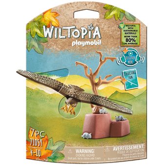 De adelaar is een van de grootste roofvogels op aarde. Zijn vleugels overspannen een afstand van 2 meter. Door het vaardige gebruik van warme, stijgende luchtmassa’s kan de adelaar moeiteloos tot hoogten van enkele duizenden meters vliegen zonder zijn vleugels. Met deze zogenaamde zweefvlucht kan hij snelheden bereiken van bijna 200 km/u – dus de adelaar zou gemakkelijk bijna alle andere voertuigen op de snelweg inhalen. Dit maakt het een van de snelste vogels ter wereld. De Wiltopia speelwereld van PLAYMOBIL nodigt kinderen uit om spannende en beschermingswaardige gebieden te ontdekken. Ontdek regio’s van onze wereld en hun talrijke dierlijke bewoners en combineer spelen en leren op een unieke manier. De PLAYMOBIL-set bevat een adelaar, drie muizen en een dierenkenniskaart. De poten van de figuur kunnen naar voren en naar achteren worden gekanteld en de poot kan aan een tak worden geklemd. Een extra portie kennis De Wiltopia-webapp biedt extra geweldige audio- en video-content en neemt kinderen mee naar de leefomgeving van de dieren. Scan eenvoudig de QR-code op de dierenverzamelkaart en de gedetailleerde dieren- en plantenwereld komt bij je thuis. Met de AR-functie is ook een selfie met de adelaar mogelijk. Zo werkt kennisoverdracht met plezier en heeft het een leereffect. Wiltopia – Prachtig voor het milieu Wiltopia is de eerste PLAYMOBIL-productlijn die gemiddeld voor meer dan 80% uit duurzaam materiaal bestaat. Gesorteerd plastic afval krijgt een nieuw leven en dient als materiaalbron voor deze bijzondere spelwereld. Dit spaart grondstoffen en vooral het milieu. Uiteraard voldoen alle producten van Wiltopia aan de gebruikelijke hoge veiligheidsnormen en de bewezen PLAYMOBIL kwaliteit en duurzaamheid.