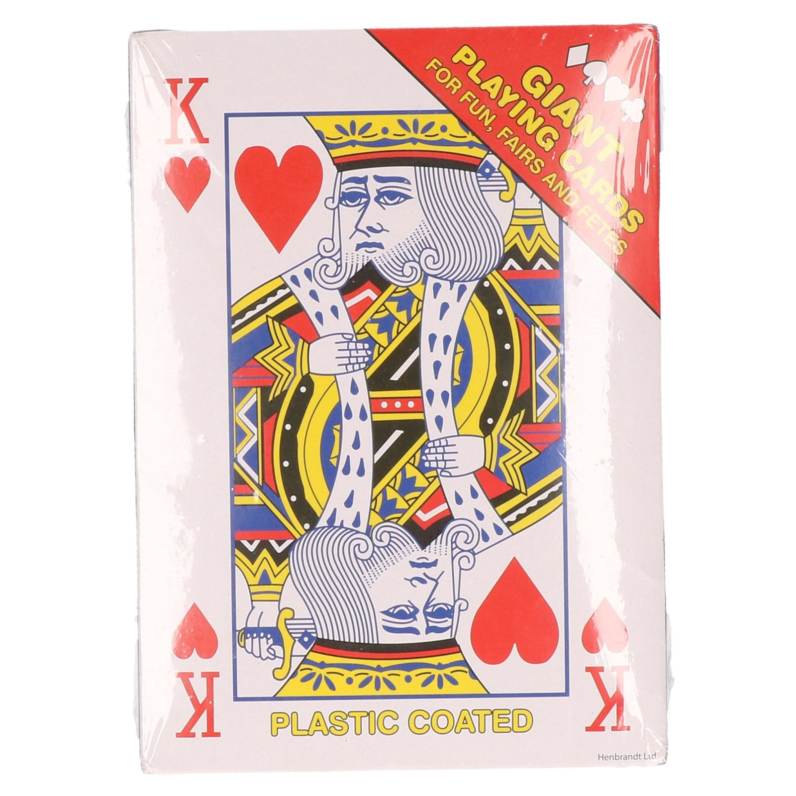 1x Pakje XL speelkaarten rood gigantisch 17 x 12 cm. Speelkaarten met een klassieke bedrukking. Deze kaarten zijn ideaal om te gebruiken tijdens feestjes. Materiaal: Karton. Kaartspellen – Speelkaarten – Poker/pokeren.